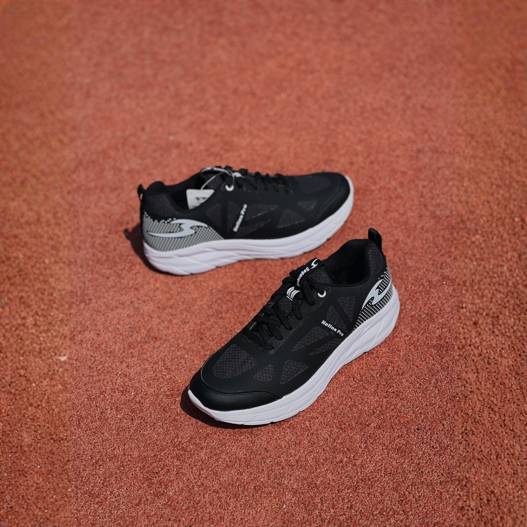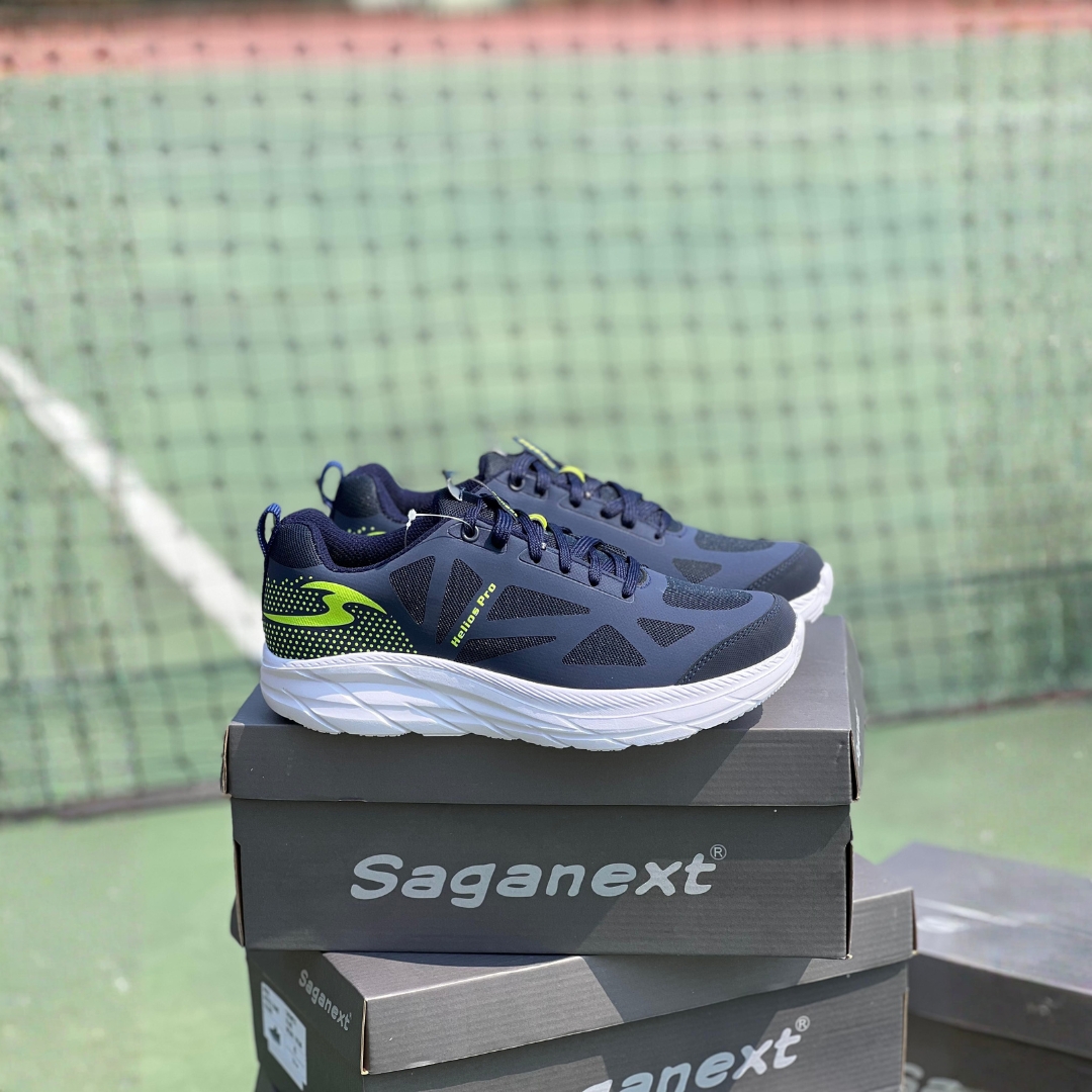 Saganext Helios Pro adalah sepatu running yang dirancang dengan desain modern dan bobot ringan untuk mendukung aktivitas olahraga maupun harian. Menggunakan upper mesh breathable yang menjaga sirkulasi udara tetap optimal, serta sol Phylon yang empuk dan fleksibel untuk memberikan pijakan lebih nyaman di setiap langkah. Tersedia dalam berbagai pilihan warna menarik seperti Hitam, Putih, Merah, Hitam Gold, Navy, dan Hijau, sepatu ini menawarkan tampilan stylish dengan performa yang tetap maksimal.